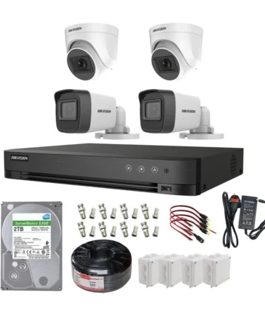 Hikvision 2MP 2 Outdoor + 2 Indoor Camera System with 4CH DVR & 2TB HDD – Complete Kit