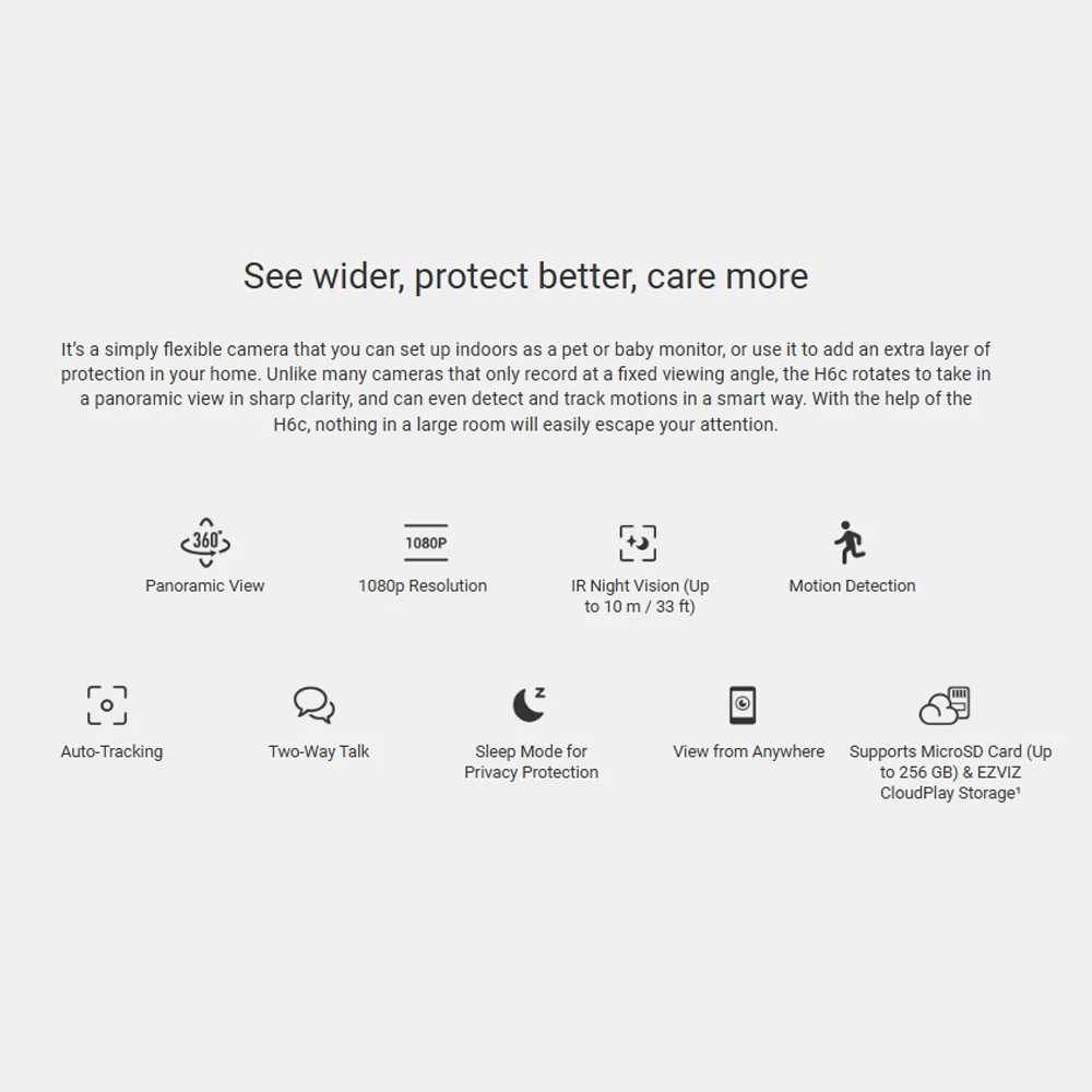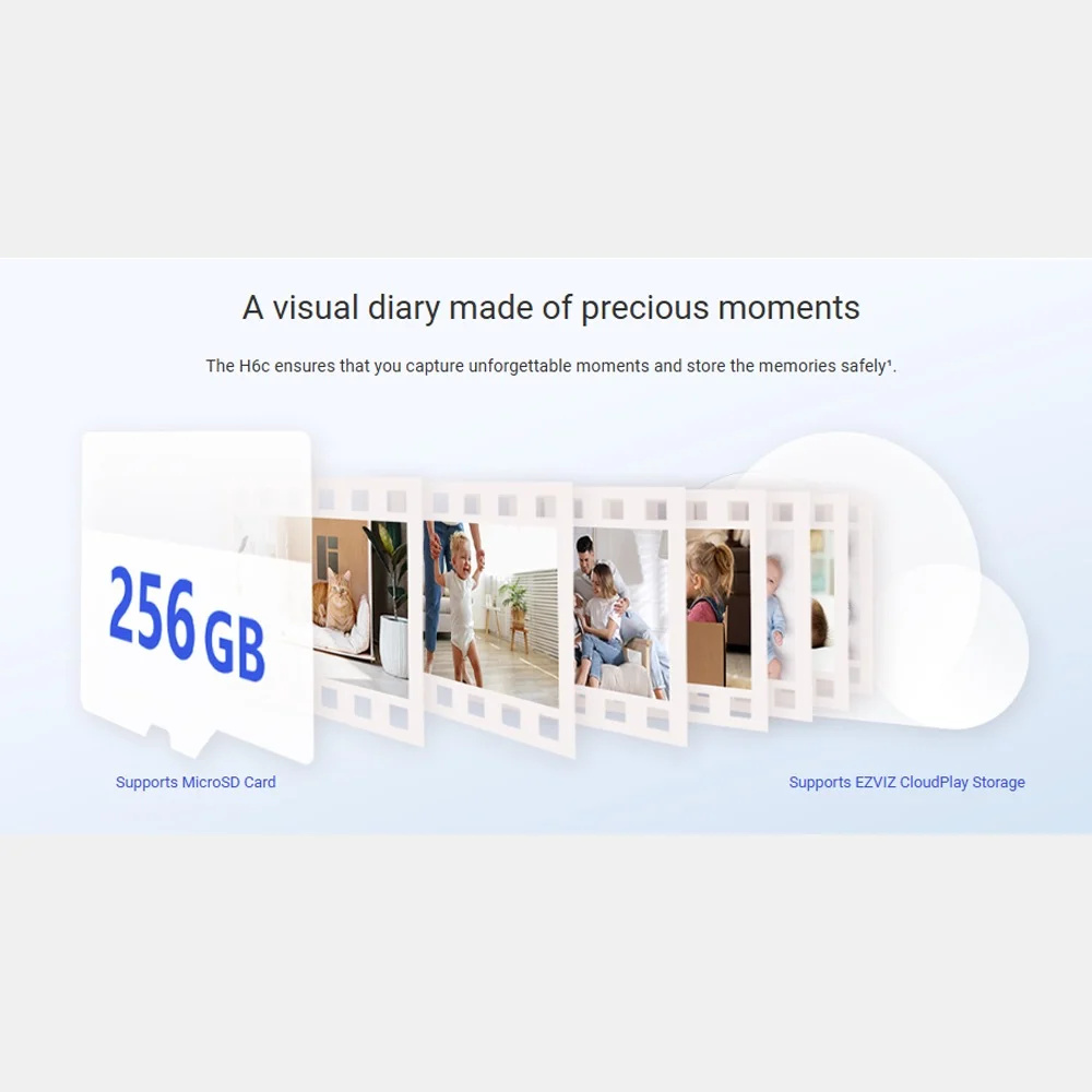 • Flexible storage options: Supports microSD cards up to 256GB and EZVIZ CloudPlay.