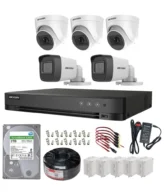 The Hikvision 2MP 2 Outdoor Camera System includes two weather-resistant 2 MP outdoor cameras, a 4-channel DVR, and a 2 TB internal hard drive. The kit comes complete with all essential installation accessories, delivering reliable outdoor surveillance with clear recording and long-term storage.