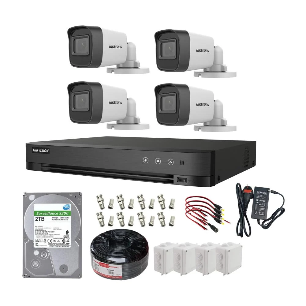Hikvision 2MP 4-Camera Security System with 4CH DVR, 2TB HDD, 100m Cable & Installation Accessories – Complete Surveillance Kit