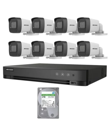 The Hikvision 2MP 8-Camera Surveillance System includes eight 2 MP cameras, an 8‑channel DVR, a 2 TB HDD, cables, and power supply. This all-in-one kit delivers full coverage for homes, offices, or shops, with continuous high-quality recording and everything needed for quick installation.