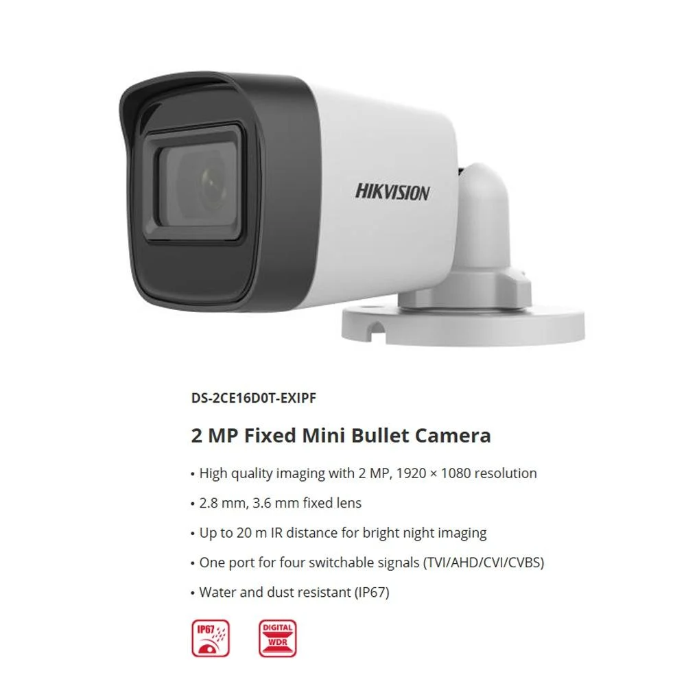 Hikvision DS-2CE16D0T-EXIPF 2MP Metal Bullet CCTV Camera Full HD 1080p Analog Security Outdoor Camera